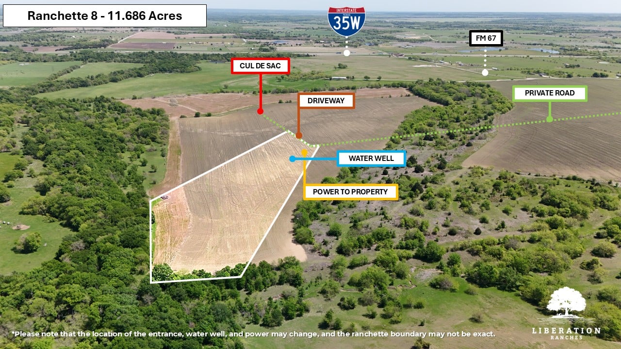 Each tract has private road frontage along the interior gravel road, which ends in a cul-de-sac for added privacy and minimal traffic. Access to FM 67 ensures convenience without sacrificing tranquility.