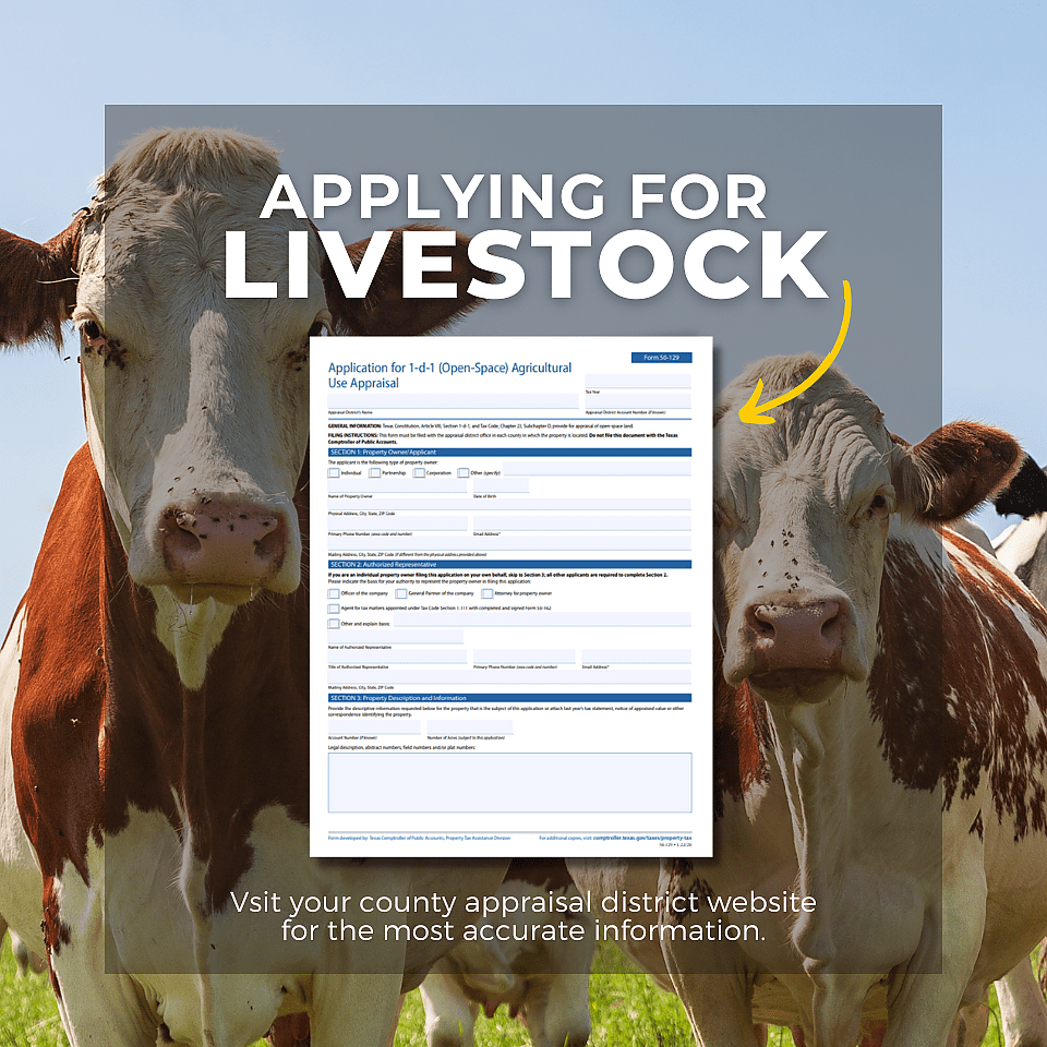 Ya que el año 2025 está a la vuelta de la esquina, los dueños de terrenos en Texas deberían empezar a prepararse para sus solicitudes de exención agrícola. Las exenciones agrícolas permiten que los propietarios de terrenos en Texas ahorren dinero en impuestos a las parcelas de tierra. Esto significa que los propietarios de tierras agrícolas pueden calcular sus impuestos a la propiedad en función del valor agrícola productivo de la tierra, en lugar del valor de mercado de la tierra.